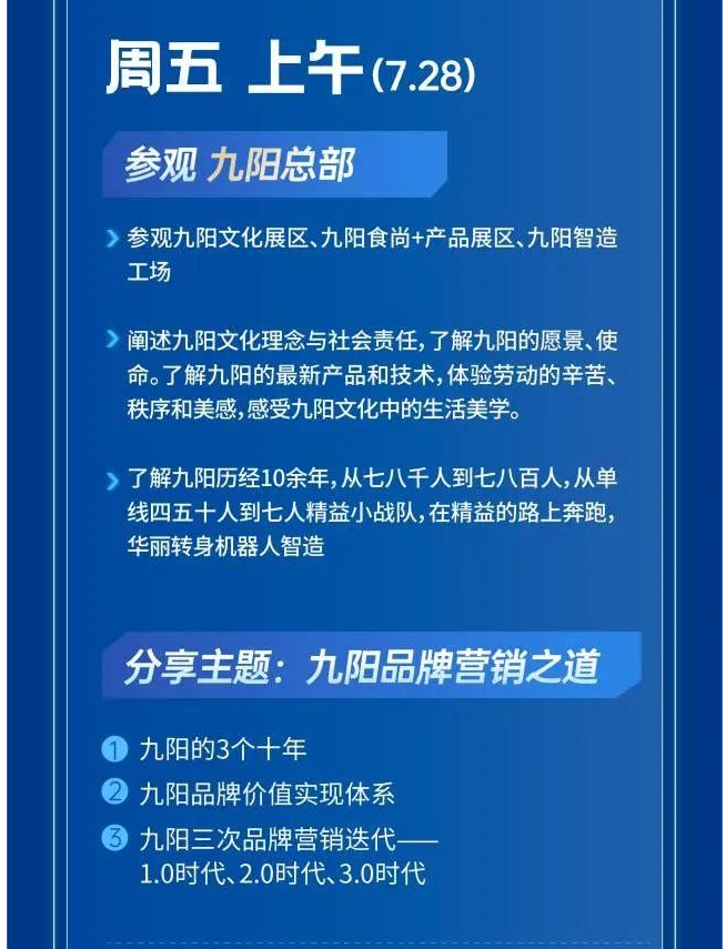 通過參觀展廳和自動化生產(chǎn)線,以及企業(yè)專業(yè)人員講解關(guān)于九陽、雙童和義烏小商品城的特色企業(yè)文化,更有思享會全面真實的案例呈現(xiàn)。