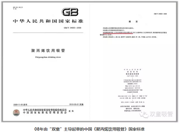 2012年7月24日,由國家塑料制品標準化技術委員會和“雙童”公司召集國內(nèi)吸管行業(yè)的十多家生產(chǎn)企業(yè),在義烏市天恒酒店召開ISO國際標準國內(nèi)分組研討會。會上集中討論了由“雙童”提交的吸管ISO國際標準草案初稿,決定采用屬地原則的有利條件,在中國《聚丙烯飲用吸管》國家標準的基礎上進行ISO國際標準的條文延伸和編輯,以最大程度上有利于中國吸管行業(yè)的健康發(fā)展。