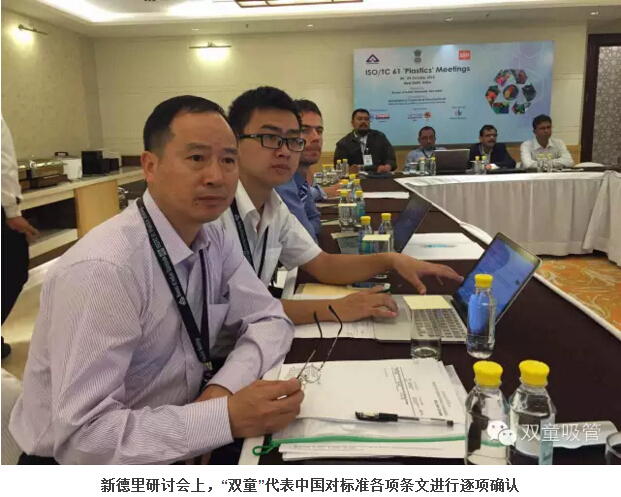 2015年10月6日,ISO TC61國際標準化組織年會在印度新德里召開,作為最后一次國際標準起草工作的定稿工作,“雙童”代表中國派出了強大的六人技術代表團。經(jīng)過幾天緊張的討論,“雙童”會同各參與主席國對《聚丙烯飲用吸管規(guī)范》送審稿的各項條文進行最終的程序性確認,在參與各國代表一致同意下形成了《聚丙烯飲用吸管規(guī)范》ISO國際標準報批稿,提交給瑞士日內(nèi)瓦的ISO國際標準化組織最終審定。