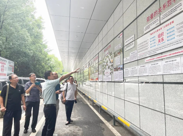 一行人專注地聆聽文化長廊里豐富的內(nèi)容介紹