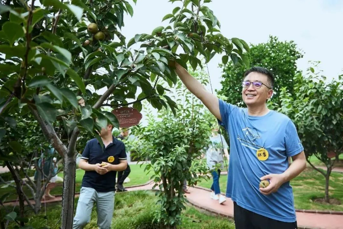 這是一個(gè)“長(zhǎng)”在屋頂約5000㎡的空中生態(tài)園,也是“雙童”的另一張名片!這里有100多種花卉和200多棵果樹,現(xiàn)在正是梨子、棗子掛滿的季節(jié)!學(xué)員們也可以“閑逛”中體驗(yàn)到采摘的樂趣。
