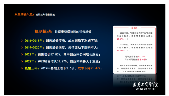 正是因為有這樣一套完整的且不斷迭代、進化的自主制創(chuàng)業(yè)裂變機制,即便是在2020年面對疫情的極端環(huán)境,“雙童”依舊憑借自主制創(chuàng)業(yè)裂變實現逆勢增長。