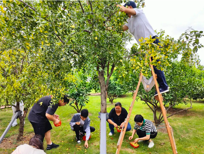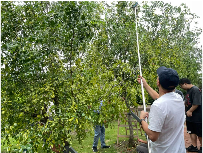 獨(dú)樂(lè)樂(lè)不如眾樂(lè)樂(lè)!在“雙童”,成熟的果子從來(lái)都是大家同享的。聽到樓總要去屋頂打棗的消息,大家早就按捺不住喜悅的心情,三五成群,自發(fā)地提著自己的小籃子加入到“打棗”隊(duì)伍中來(lái)!