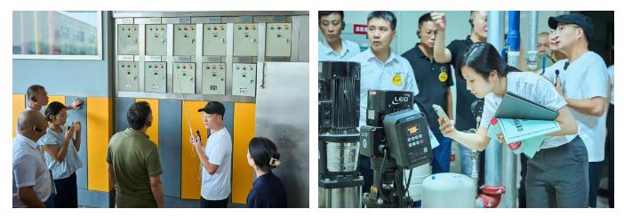 樓總在和學(xué)員們介紹二期廠房水泵的工作情況