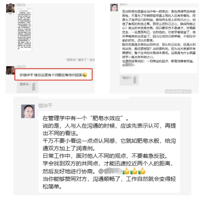 每一個(gè)站點(diǎn)參訪結(jié)束,導(dǎo)師樓仲平都會(huì)利用“巴士課堂”對(duì)參訪站點(diǎn)進(jìn)行總結(jié),并且在一天的參訪結(jié)束之后,會(huì)在交流群以“批改作業(yè)”的形式,對(duì)學(xué)員提出的問題更是“知無不言”!讓每一位學(xué)員的游學(xué)之旅,都不是走馬觀花,而是有深度的研學(xué),最終滿載而歸!