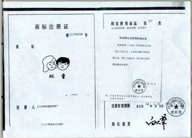 那時很多企業(yè)還沒有商標的概念,樓仲平走在了前列,他的“雙童”牌,成了整個義烏的第17個商標。