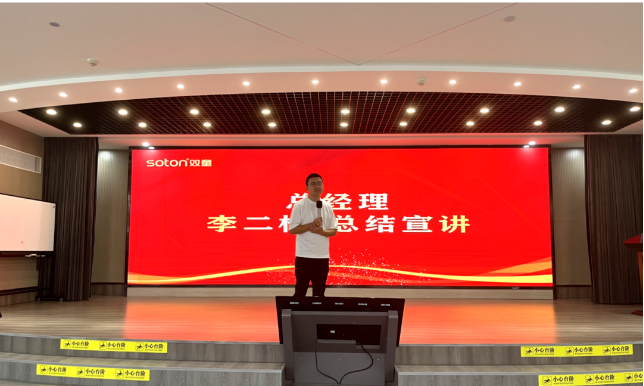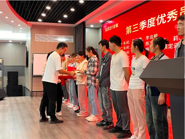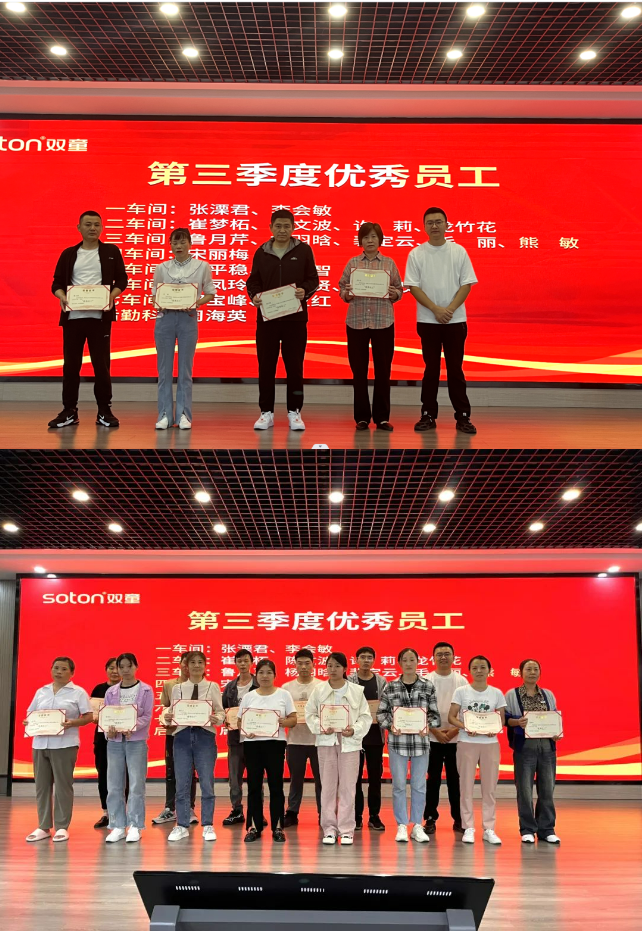 當(dāng)頒獎音樂響起,現(xiàn)場氛圍瞬間被點燃,在陣陣掌聲中,“優(yōu)秀員工”獲得者走向舞臺中央,在聚光燈下,總經(jīng)理李二橋依次為他們頒發(fā)榮譽證書。相信這一刻,對每一位“優(yōu)秀員工”來說都意義非凡,對臺下的全體員工也是莫大的鼓舞!