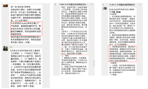 研學(xué)班學(xué)員在社長講解下,詳細參觀了整個酒造場的生產(chǎn)過程。跟著社長“逛”了一圈兒,大家早就被酒香“陶醉了”,已經(jīng)忍不住要體驗一下了~從生產(chǎn)車間出來,大家又被酒造場戶外的綠色深深吸引,整個酒造場宛若建在叢林深處,清新、宜人,精妙的綠色環(huán)保型廠區(qū)讓學(xué)員們紛紛化身“好奇寶寶”,迫不及待地邀請社長答疑~為了能夠讓大家勞逸結(jié)合,每次學(xué)習(xí)都能以最佳的學(xué)習(xí)狀態(tài),在整個研學(xué)路線中,也穿插了不同的景點,感受日式商業(yè)中心,東京最古老的淺草寺,走進日本知名TOP級頂尖高校東京大學(xué)……除了走進景區(qū),研學(xué)班還走進東京最高學(xué)府——東京大學(xué)課堂,理論+實踐,企業(yè)才能走得更長遠,實地走訪了多加企業(yè)之后,研學(xué)班學(xué)員在行程最后一站安排到了東京大學(xué)!由東京大學(xué)教授親自為學(xué)員們授課,讓大家通過另一個維度的學(xué)習(xí)賦能企業(yè)成長!東京大學(xué)教授就《日本的商業(yè)零售及其特點》,為來訪者進行授課~大家在本期日本游學(xué)最后一站點-東京大學(xué)合影通過本次日本企業(yè)游學(xué)之旅,很多學(xué)員都深受啟發(fā),加之樓仲平和祖林老師幫助學(xué)員們理清思路。在貫穿研學(xué)全程的巴士課堂上大家暢所欲言,分享所見所得所想。無論是從巴士課堂上的分享發(fā)言、還是從形成文字感悟來看,都能看出來大家收獲滿滿!結(jié)束當(dāng)天的企業(yè)參訪后,研學(xué)班所有學(xué)員都能做到及時復(fù)盤!行在路上,學(xué)在心里!