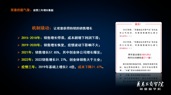 在2021年到2022年,兩年時(shí)間“雙童”銷(xiāo)售額復(fù)合增長(zhǎng)了107.2%。創(chuàng)業(yè)體板塊銷(xiāo)售額已超過(guò)主營(yíng)吸管板塊!相當(dāng)于用創(chuàng)業(yè)平臺(tái)“再造”了一個(gè)“雙童”!