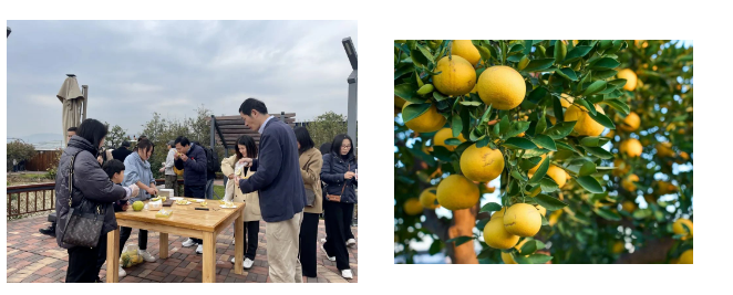 5000平的屋頂花園是雙童綠色工廠的另外一張名片!參觀完地上地下的節(jié)能降耗設(shè)施后,董事長(zhǎng)樓仲平帶大家來(lái)到了空中生態(tài)園,當(dāng)大家趕到時(shí),“雙童”的工作人員已經(jīng)為大家準(zhǔn)備好了新采摘的胡柚!
