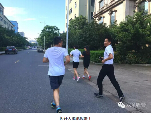 近期,在我們”雙童“內(nèi)部可是掀起了一股“晨跑風(fēng)”呢!每天清晨,原本應(yīng)該陸陸續(xù)續(xù)到辦公室上班的童鞋們早就穿好了運(yùn)動鞋,活力滿滿地出現(xiàn)在門衛(wèi)處簽到,三三兩兩地繞著廠區(qū)跑起步來!
