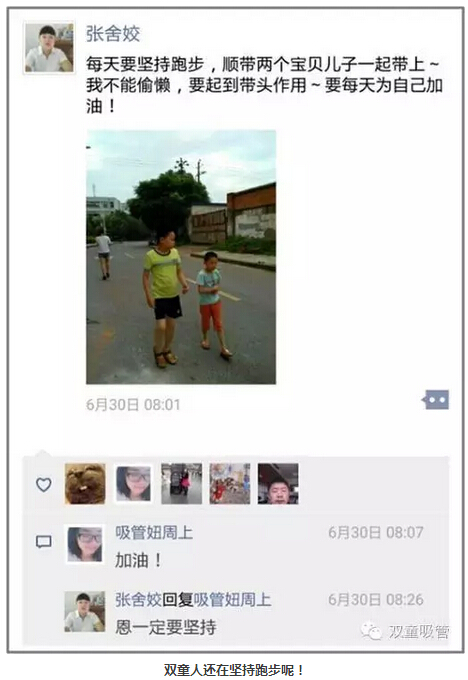 養(yǎng)成跑步習(xí)慣后,就算活動結(jié)束了,”雙童“人的跑步熱情可是不減呢!看,這位”雙童“媽媽還帶著她的寶貝們一起呢!看來大家領(lǐng)悟到運(yùn)動和工作結(jié)合的樂趣啦!童鞋們,生命不息,運(yùn)動不止,快來和我們”雙童“一起奔跑吧!