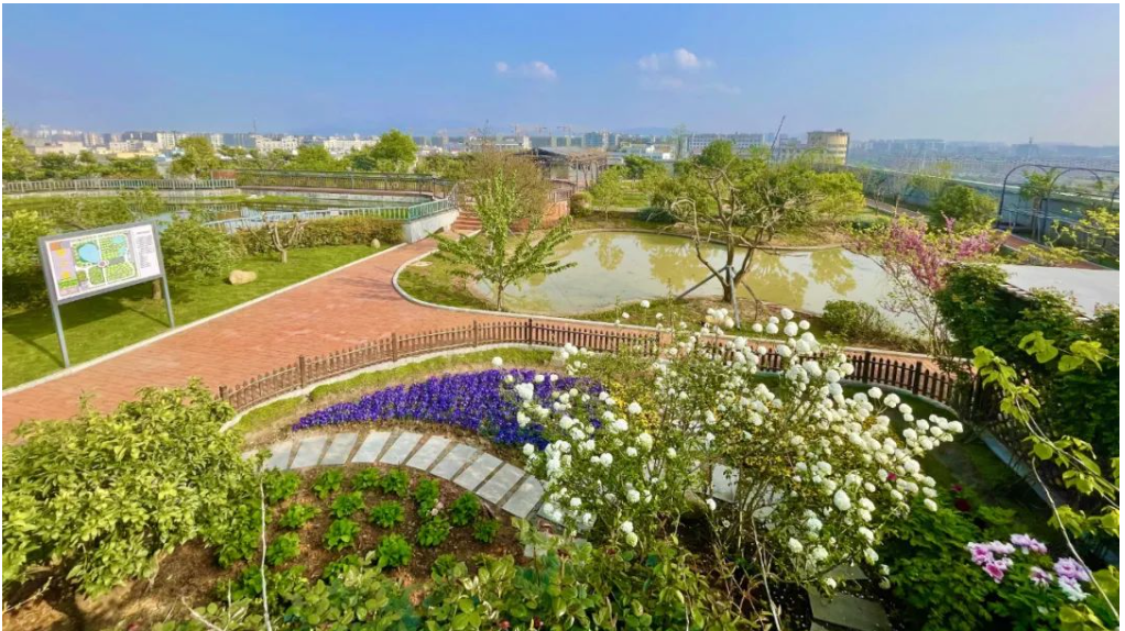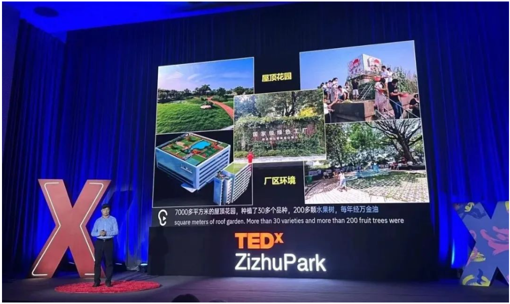 在我精心的設(shè)計(jì)下,公司的每一寸土地都得到了極致的利用,我利用工廠的各個(gè)角落和空間里,建設(shè)了一片片的綠地,我利用部分廠房的屋頂上,建設(shè)了全天候開放7000多平米的屋頂花園,栽種了30多個(gè)品種的200多棵水果樹,每年近萬斤的水果,全部用于員工分享,讓他們?cè)诠ぷ髦?,有了一個(gè)個(gè)休閑、娛樂的好去處,成為一個(gè)既適合工作、創(chuàng)業(yè)、又適合生活的花園式社區(qū)工廠,并于2018年榮獲義烏首家“國家級(jí)綠色工廠”。