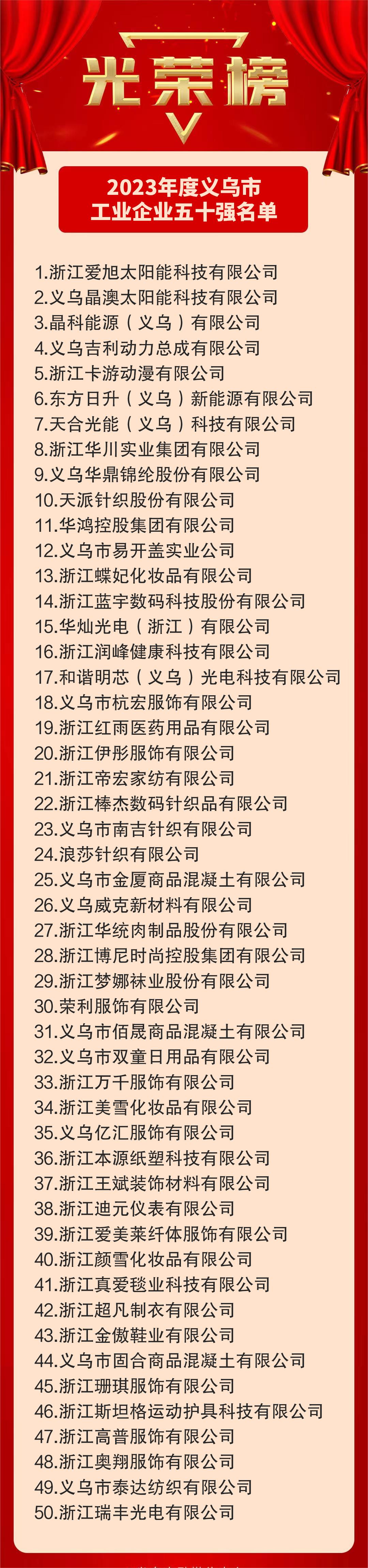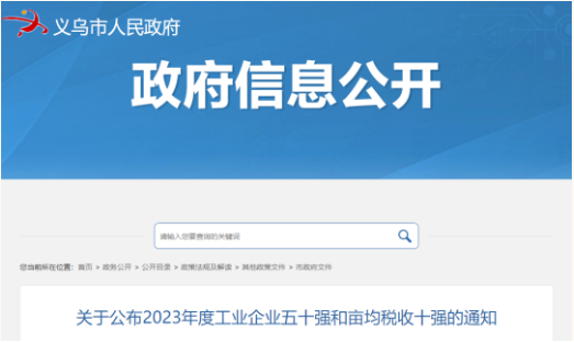 2023年度義烏市工業(yè)企業(yè)五十強(qiáng)名單