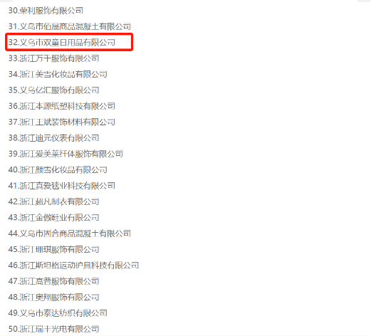 2月20日,義烏市人民政府網(wǎng)公布了“全市工業(yè)企業(yè)50強(qiáng)”名單,“雙童”首次登榜,位居第32位!