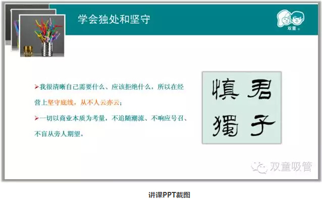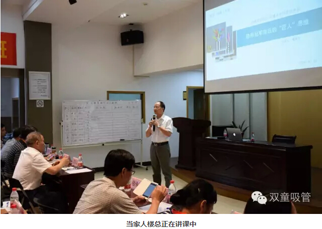 課程正式開始!當(dāng)家人樓總用了兩個多小時的時間,向大家闡述了他經(jīng)營”雙童“二十多年所積累下來的寶貴經(jīng)驗心得。其中,當(dāng)家人樓總重點向大家講述了”雙童“由初心、恒心、平常心組成的”匠人之心“。