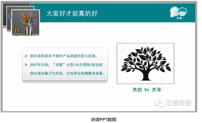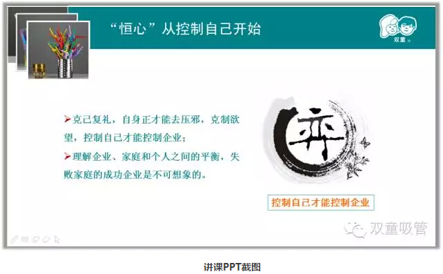 樓總談到自己時說:“一輩子精力有限,把一根吸管真正做好就行了。”雙童強調(diào)以小博大,“博”不是拼搏的搏,而是博大的博,就是要以博大的胸懷把一件事情做好!