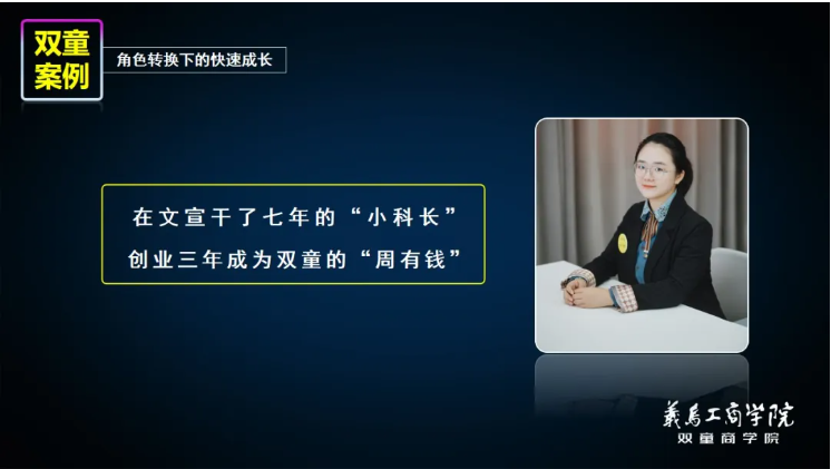 就像雙童平臺(tái)第五創(chuàng)業(yè)體總經(jīng)理周上,沒(méi)有被機(jī)制推動(dòng)之前,她做了7年的“無(wú)憂無(wú)慮”的“小科長(zhǎng)”,但通過(guò)裂變機(jī)制從員工向創(chuàng)業(yè)者角色轉(zhuǎn)換后,僅用3年的時(shí)間,自我驅(qū)動(dòng),成為雙童平臺(tái)成長(zhǎng)最快的創(chuàng)業(yè)體總經(jīng)理!