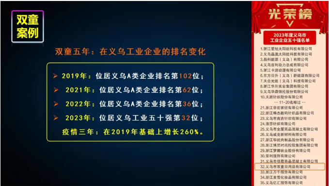 第二天早上,他就背著電腦從他租的房子里搬到我工廠來。當(dāng)時我的工廠還很小,七八十人,但就因?yàn)樗囊M(jìn),完全改變了雙童!那一年雙童從內(nèi)貿(mào)轉(zhuǎn)到外貿(mào),利潤率大幅提高!因?yàn)樗挠⒄Z、數(shù)字化應(yīng)用這些東西都很熟練,我們兩個人搭檔強(qiáng)強(qiáng)聯(lián)合,“雙童”在99年、00年、01年這三年,每年都能翻一番!因?yàn)槲芙Y(jié)緣,惺惺相惜