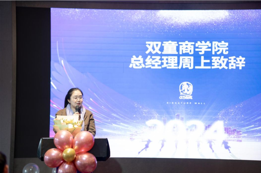 2023年底,湖南巧姨清潔用品有限公司在舉辦年會(huì)當(dāng)天,正式啟動(dòng)了創(chuàng)業(yè)共享平臺(tái)儀式,雙童商學(xué)院執(zhí)行院長周上前往儀式盛典現(xiàn)場并致辭。