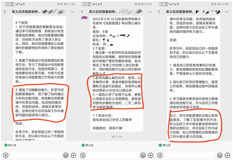 為了幫助學(xué)員對課程知識的理解、轉(zhuǎn)化與應(yīng)用,課程結(jié)束后,章老師仍然會在群里為企業(yè)學(xué)員答疑解惑,不少同學(xué)也分享自己的所學(xué)所感,共同維護學(xué)習(xí)場域!