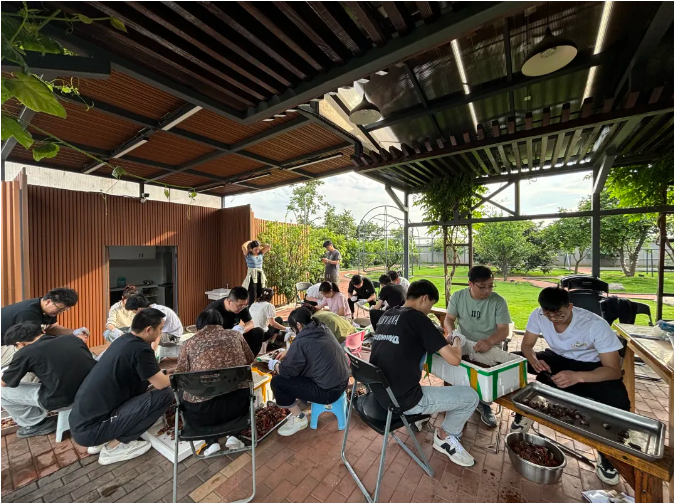 迎著晚風(fēng),雙童屋頂花園的枇杷林飄來陣陣香甜的氣息,沁人心脾!所以在等待小龍蝦成熟的過程中,大家在總助的提議下,決定一起釀一壇“枇杷酒”,待到下月團(tuán)建,就由銷售經(jīng)營體的銷冠親自開封,儀式感直接拉滿!