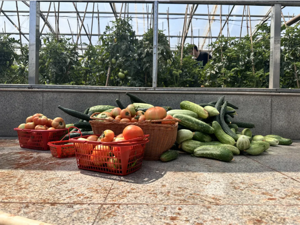 采摘“戰(zhàn)斗”結束,滿載而歸!乘電梯下來,就是員工的宿舍了。我們隨機跟著來到一位員工的家里,見證“雙童人”如何不出廠區(qū)就實現(xiàn)自給自足的!