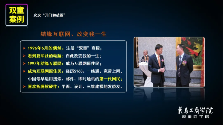 早在1996年注冊“雙童”商標(biāo)時,自己就開始學(xué)習(xí)電腦應(yīng)用,成為中國互聯(lián)網(wǎng)的原住民。并在數(shù)字化工具加持下,為“雙童”率先打開了國際市場,短短幾年時間,超越同行,奠定了成為行業(yè)冠軍的基礎(chǔ)。