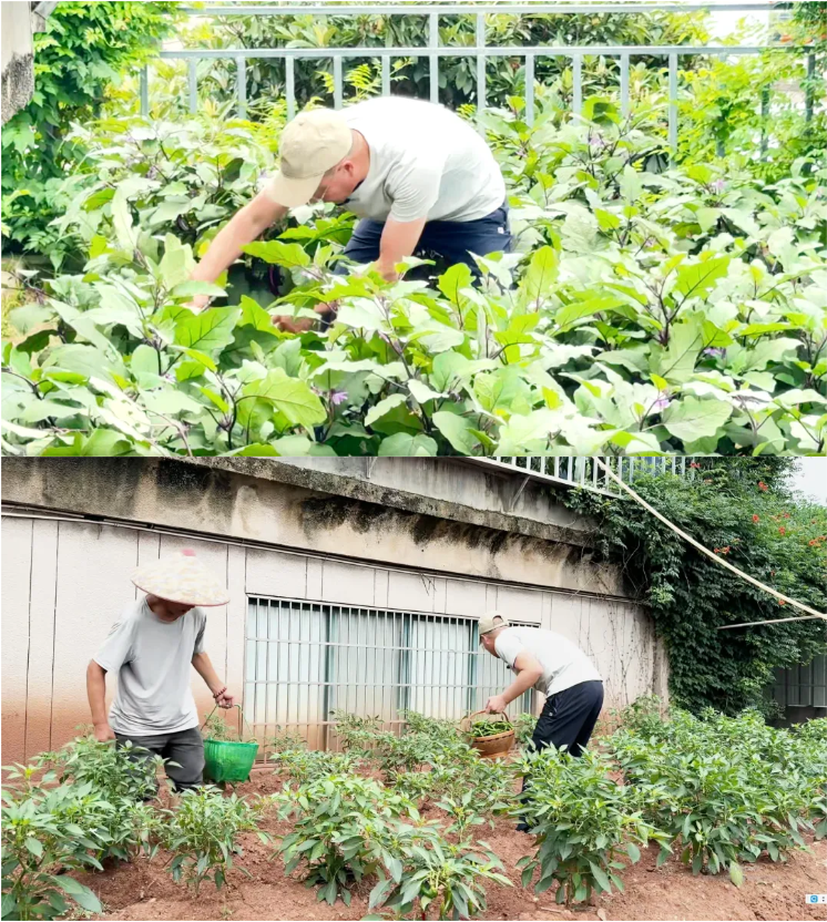 !而且,既然是“蔬菜大放送”,肯定是多多益善了~所以,等到這邊摘得差不多了,樓總又帶著“摘菜小分隊(duì)”轉(zhuǎn)移陣地,前往另一個(gè)屋頂菜園!