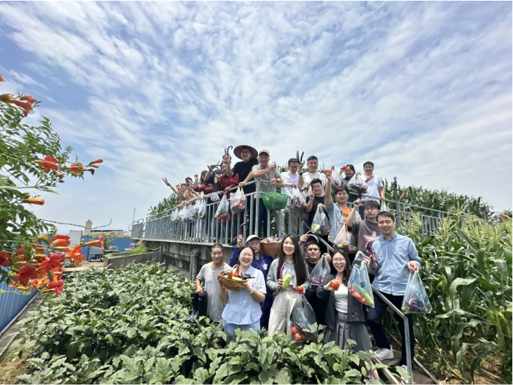剛好快到中午下班時(shí)間,趕得上燒午飯,于是樓總在我們的分菜群里一發(fā)照片,員工紛紛趕到屋頂來(lái)了!