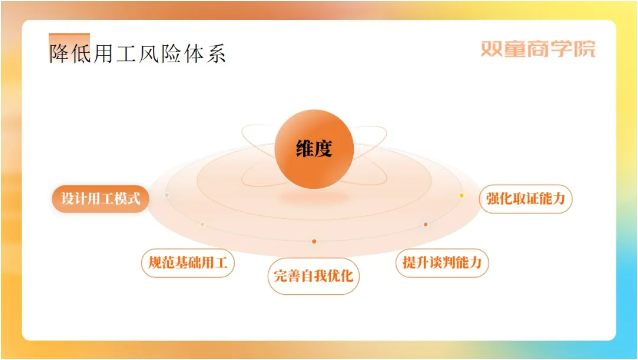 所以,《中堅(jiān)力量》第二模塊將由雙童商學(xué)院中堅(jiān)力量課程老師高熙昀、雙童商學(xué)院法律顧問吳軍財(cái)和雙童第五創(chuàng)業(yè)體總經(jīng)理周上三位老師共同完成交付,分別從選人、育人、用人、留人和裁人5個(gè)方面,提升管理者“有溫度帶人”的能力!