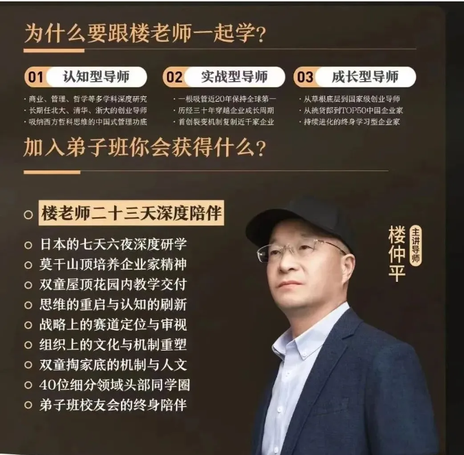 如果你是創(chuàng)業(yè)者、學習者、思想者,希望在經(jīng)營領(lǐng)域有自己的思考和洞察,那么樓仲平【弟子班】就是為你量身定制,今年最后一期招生,一班只招40位同學,名額所剩不多,抓緊機會哦!
