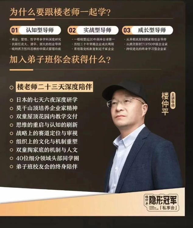 如果你是創(chuàng)業(yè)者、學(xué)習(xí)者、思想者,希望在經(jīng)營領(lǐng)域有自己的思考和洞察,那么樓仲平【弟子班】就是為你量身定制,今年最后一期招生,一班只招40位同學(xué),名額所剩不多,抓緊機(jī)會哦!