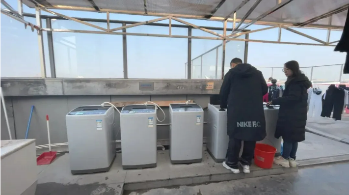 在員工宿舍9樓,“雙童”設(shè)有一個露天洗衣房,這個區(qū)域大約有兩三百平方米。為了應(yīng)對多變的天氣條件,該區(qū)域上方安裝了陽光板。這樣做的原因是為了在晴天時讓陽光充分照射進(jìn)來,使衣物能夠得到充足的日曬,同時在雨天又能防止衣物被淋濕。