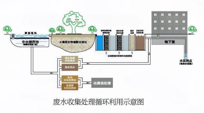中水景觀池的精髓蘊含于其命名之中,“中水”實則源自“雙童”廠區(qū)內(nèi)部經(jīng)過處理的生活廢水。值得注意的是,這些廢水并非直接呈現(xiàn)為我們眼前所見的池水景象,而是巧妙地存儲于景觀池下方的特定中水儲存池中。