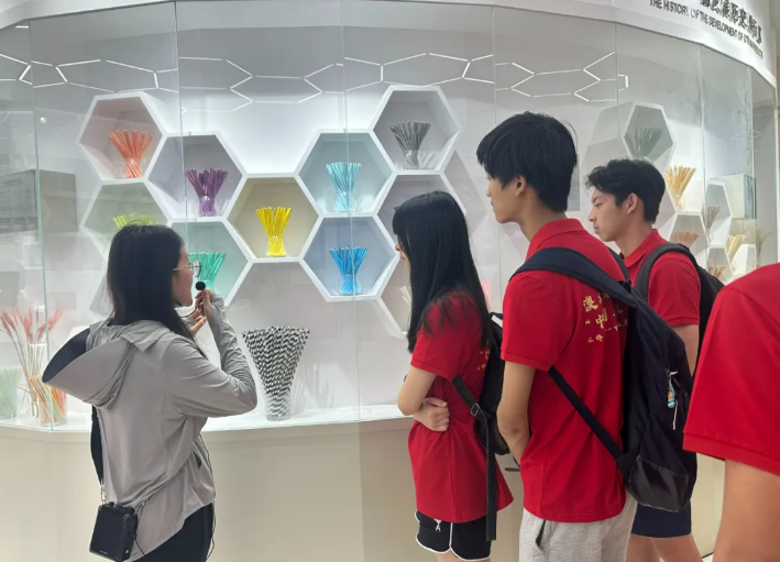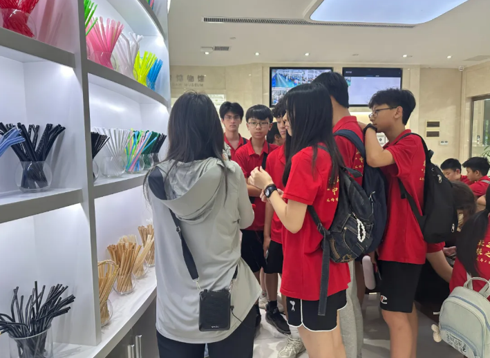 隨后,同學(xué)們深入吸管博物館展區(qū),逐一探索了吸管的歷史演變:從原始的秸稈吸管,到工業(yè)初期的紙制吸管,再到現(xiàn)代普及的塑料吸管,直至未來趨勢的聚乳酸可降解吸管,每一步都見證了人類智慧與環(huán)保意識的進(jìn)步。