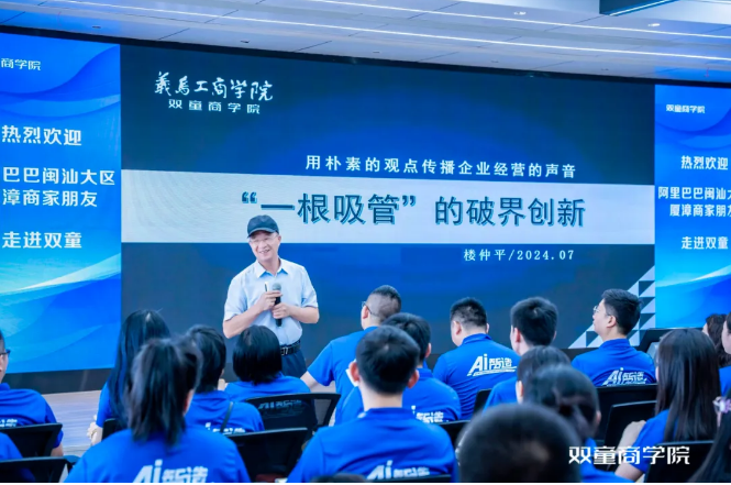 在課程收尾之際,創(chuàng)始人樓仲平也為前來研學(xué)的商家們分享《“一根吸管”的破界創(chuàng)新》。他娓娓道來,追溯了與阿里巴巴長達(dá)二十余載的深厚淵源,并深度剖析了“雙童”如何做到與數(shù)字化深度融合,并能轉(zhuǎn)型成功的。