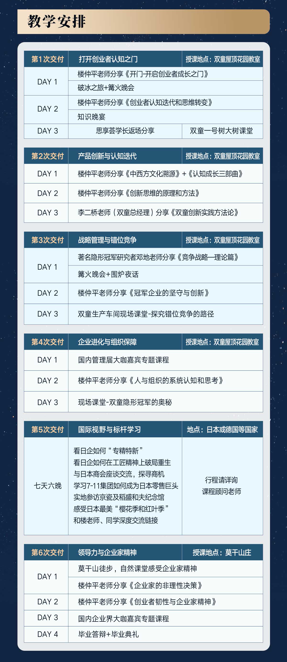 也是樓總唯一一個全面系統(tǒng)交付46年創(chuàng)業(yè)歷程的經(jīng)驗總結(jié)和思維模型的課程。全年6期課程,樓老師24天深度陪伴,從戰(zhàn)略到組織,從創(chuàng)新思維到企業(yè)家精神,幫助你的企業(yè)全方位升級。