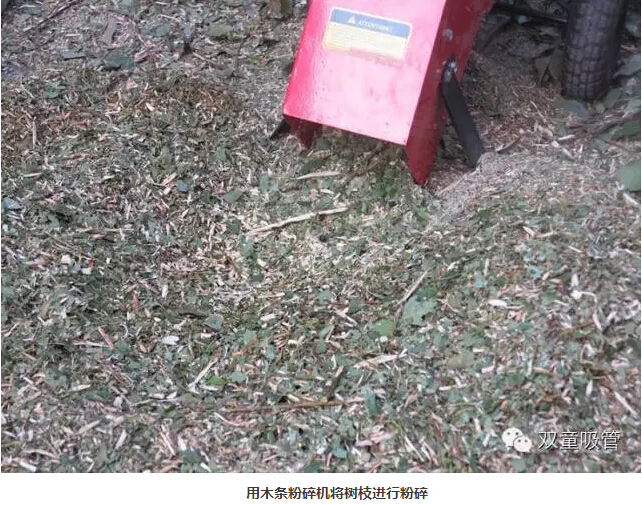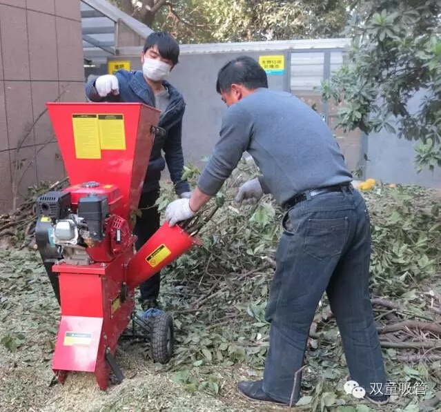 而對園林綠化維護中產(chǎn)生的樹枝枯葉等生物質(zhì)垃圾,我們則專門購置了一臺木條粉碎機,對生物質(zhì)垃圾進行粉碎處理。該物四四方方,遍體通紅,上一口,側(cè)一口,塞進去的枝葉全都絞碎成粉末,威力可真是大!