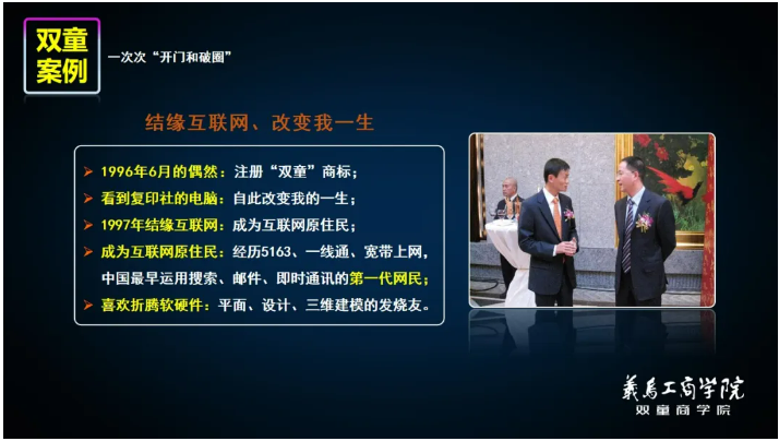 早在1996年注冊(cè)“雙童”商標(biāo)時(shí),自己就開始學(xué)習(xí)電腦應(yīng)用,成為中國(guó)互聯(lián)網(wǎng)的原住民。并在數(shù)字化工具加持下,為“雙童”率先打開了國(guó)際市場(chǎng),短短幾年時(shí)間,超越同行,奠定了成為行業(yè)冠軍的基礎(chǔ)。