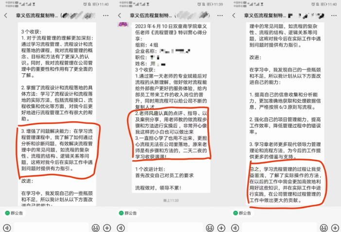 為了幫助學員對課程知識的理解、轉(zhuǎn)化與應用,課程結(jié)束后,章老師仍然會在群里為企業(yè)學員答疑解惑,不少同學也分享自己的所學所感,共同維護學習場域!