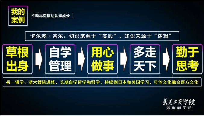 分享中,他以自己46年的創(chuàng)業(yè)歷程為案例,向大家剖析了“雙童”能夠?qū)崿F(xiàn)一次次成功轉(zhuǎn)型、穿越一個(gè)個(gè)經(jīng)濟(jì)周期,都離不開(kāi)創(chuàng)始人不斷的思維破圈和成長(zhǎng)進(jìn)化。
