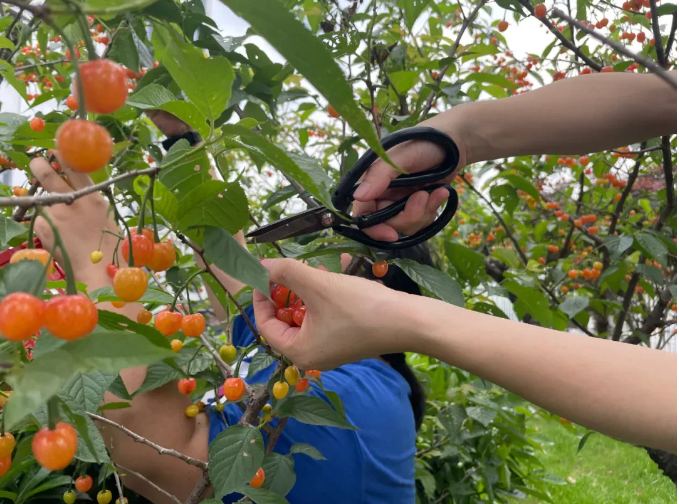 摘下一顆,丟進(jìn)嘴里,有的酸些,有的甜些,好似“開盲盒”的體驗(yàn),讓大家欲罷不能,一顆又一顆,還好櫻桃樹足夠多,能讓大家實(shí)現(xiàn)“櫻桃自由”