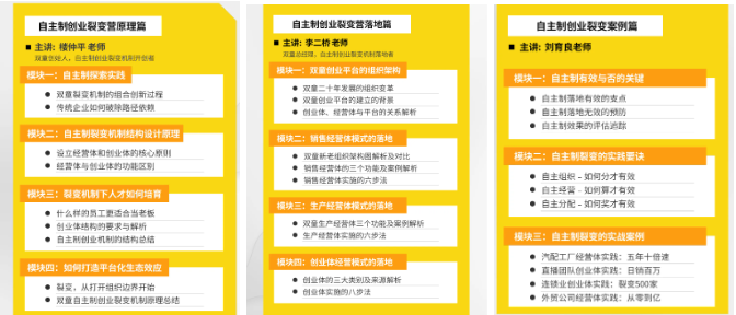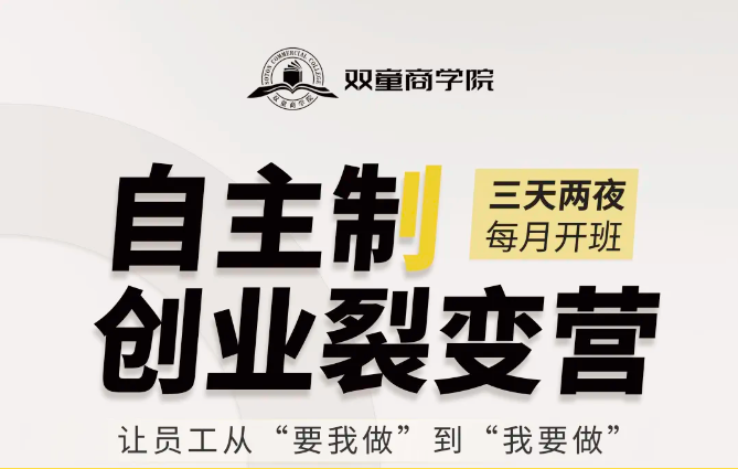 而《自主制創(chuàng)業(yè)裂變營》就是依托該機(jī)制,把“雙童”的落地實操方法與成功經(jīng)驗經(jīng)驗有機(jī)結(jié)合,不斷打磨、升級的一套針對中小微企業(yè)的管理課程。