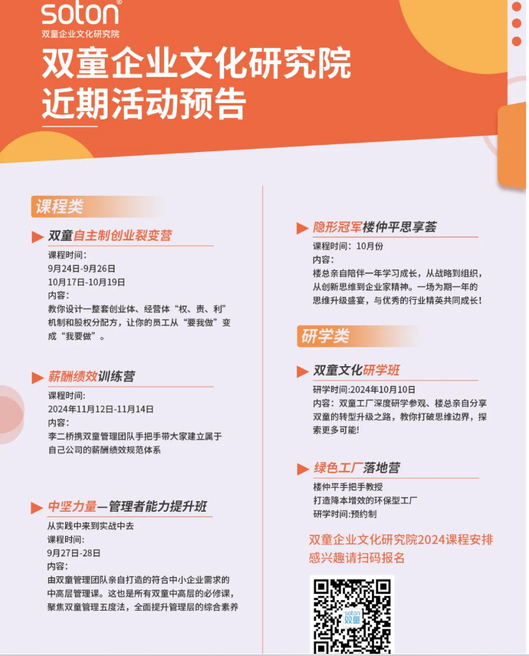 企業(yè)管理者,要把握好不同員工精神欲望,要勾起這種欲望,就要求管理者懂人性、識(shí)人心。所以,在“雙童”這種開(kāi)放包容的企業(yè)組織下,大家都愿意交流,不同思想碰出火花,員工認(rèn)知就提升了,積極的情緒又驅(qū)動(dòng)行為的產(chǎn)生,創(chuàng)新的概率由此增加,生產(chǎn)力自然而然也就提高了!