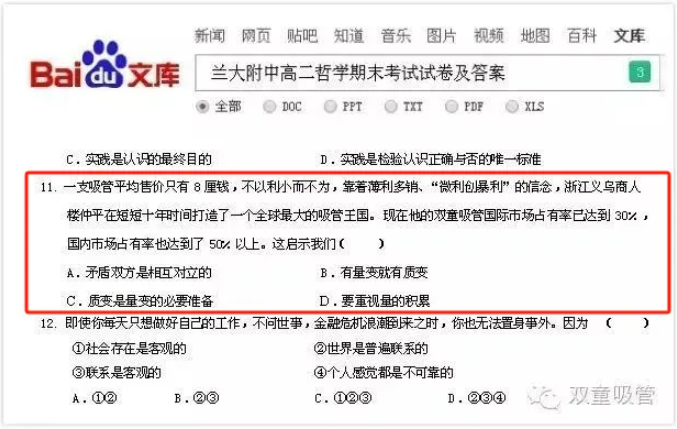 “雙童”案例甚至進(jìn)入了蘭大附中的高二考題