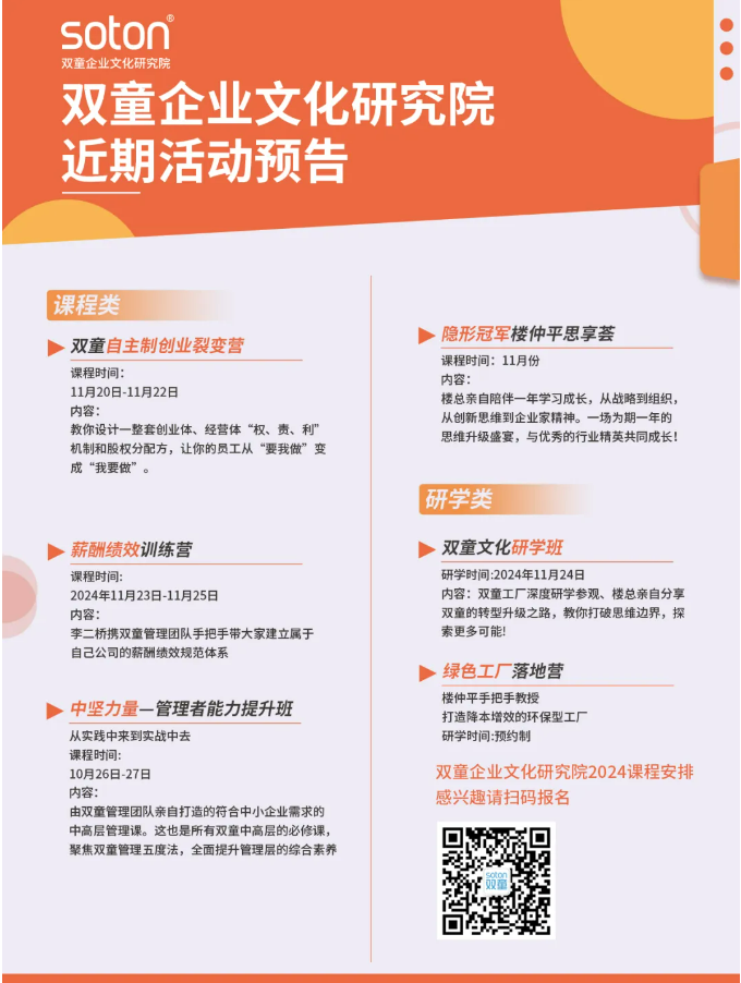 雙童商學(xué)院將通過本次展會(huì),向更多中小企業(yè)傳播雙童的文化、經(jīng)營(yíng)理念,讓更多人認(rèn)識(shí)這個(gè)實(shí)戰(zhàn)類創(chuàng)業(yè)教育培訓(xùn)的商學(xué)院。