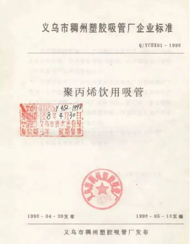 1998年 | 《聚丙烯飲用吸管》企業(yè)產品標準 |