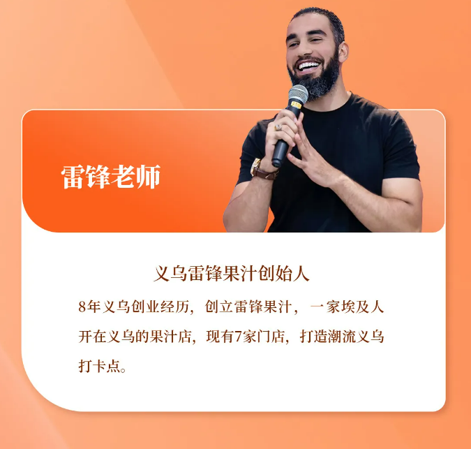 2)來自埃及的國際友人雷鋒老師,將帶來他在異國他鄉(xiāng)的創(chuàng)業(yè)故事,讓學員們能從一個全新的視角去看待創(chuàng)業(yè)這件事情。
