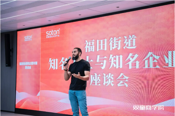 座談會(huì)的最后階段,作為福田街道杰出的企業(yè)家代表,來(lái)自埃及的雷鋒果汁創(chuàng)始人穆罕默德從自身企業(yè)經(jīng)營(yíng)狀況出發(fā),圍繞產(chǎn)品創(chuàng)新、銷售模式等話題發(fā)表了自己的經(jīng)驗(yàn)看法。